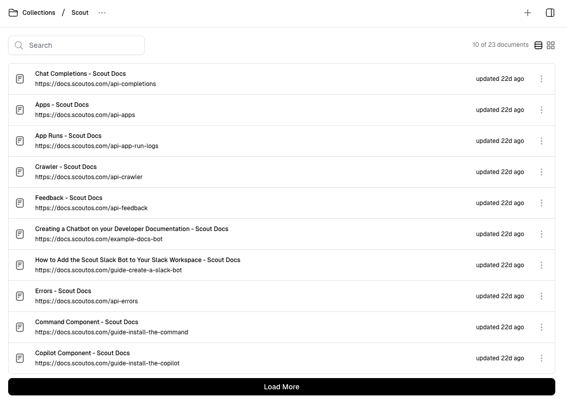 Databases are groups of documents that can be used and created within Scout. Each document can contain metadata and text content. The text content is chunked and used for vector search. The metadata can be used to filter and sort the documents.