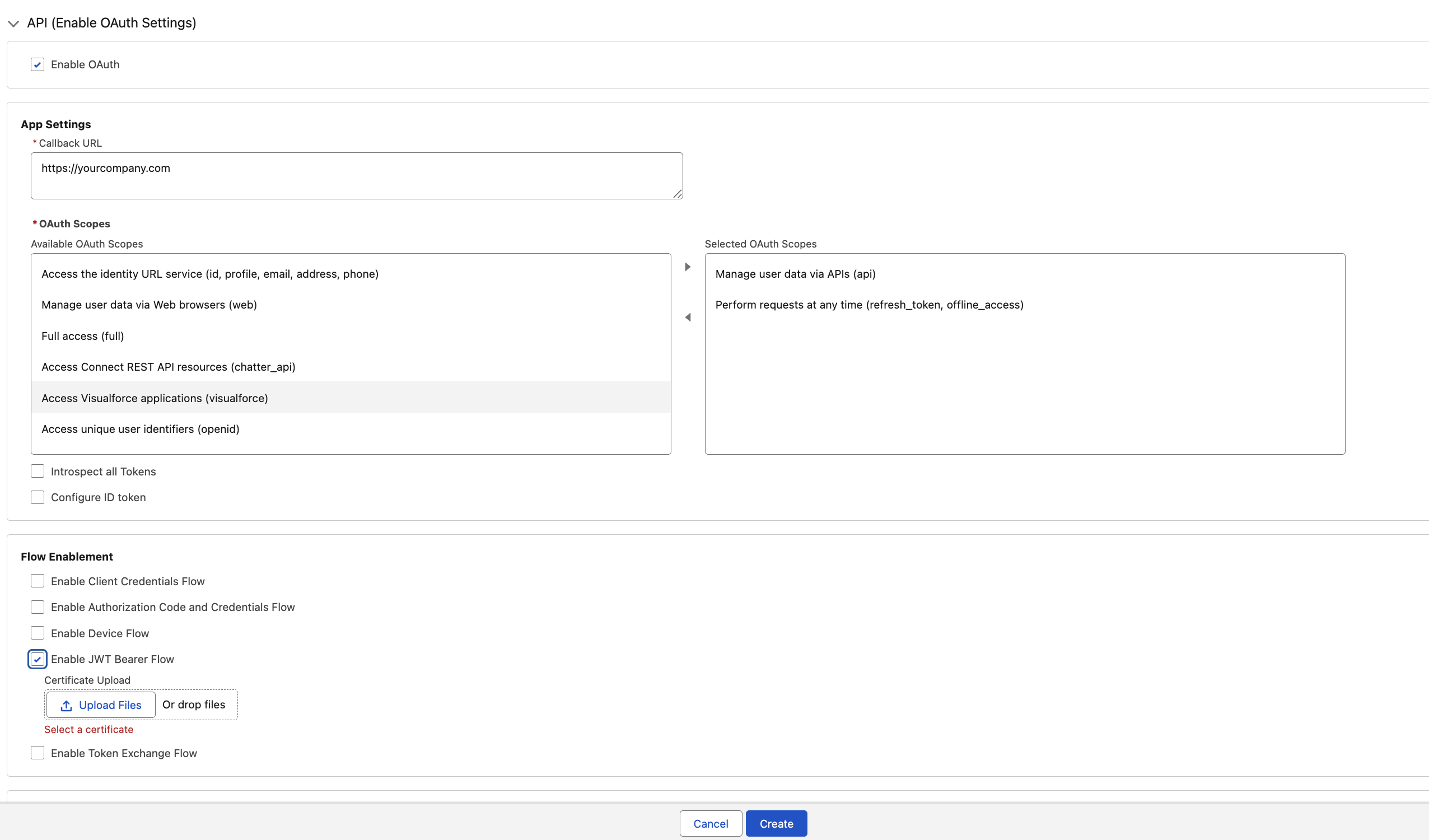 This step is only needed once per Salesforce org. If you’ve created Connected Apps before, this is already enabled.