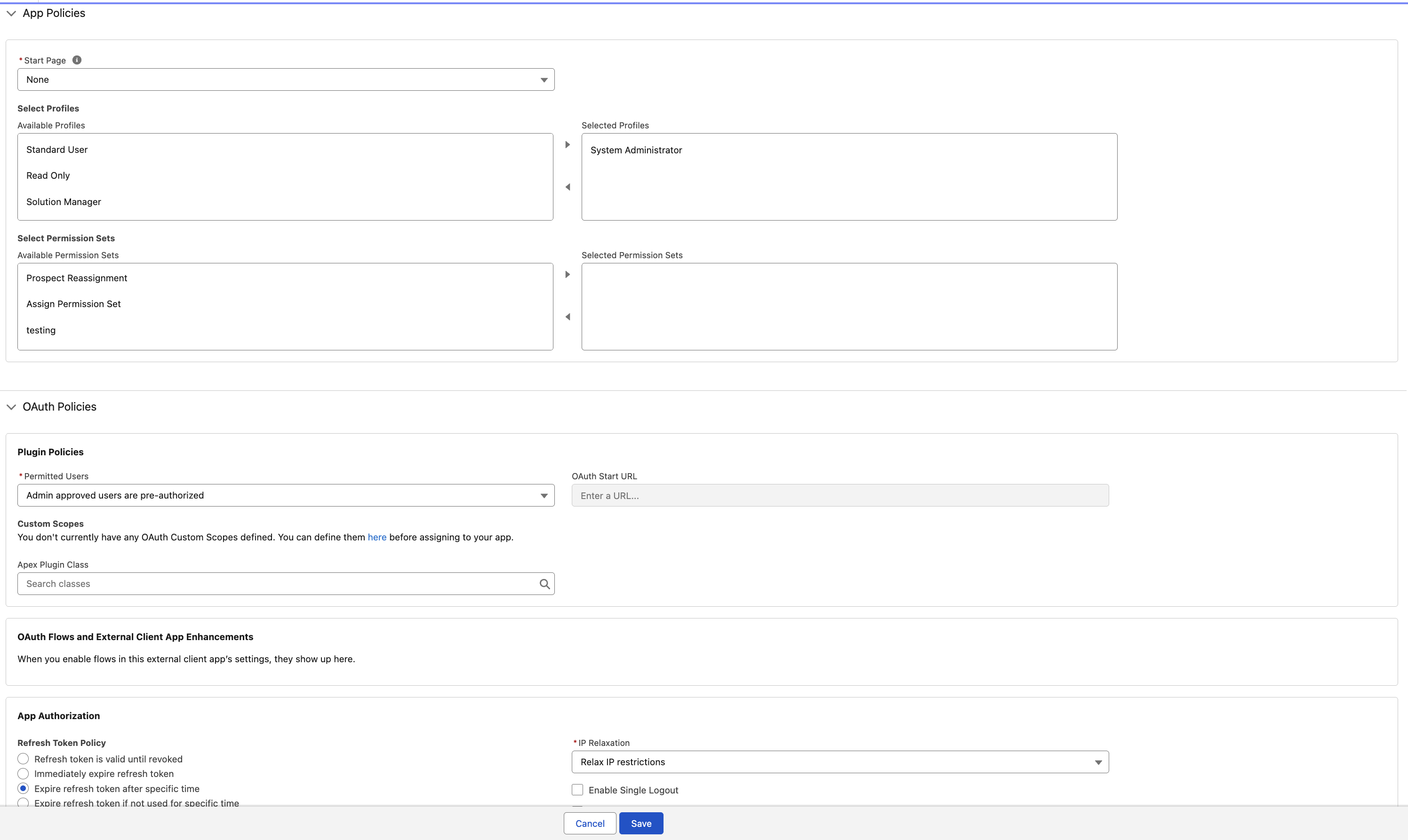 - Check if “Allow creation of connected apps” is enabled: Setup → External Client Apps → External Client App Settings