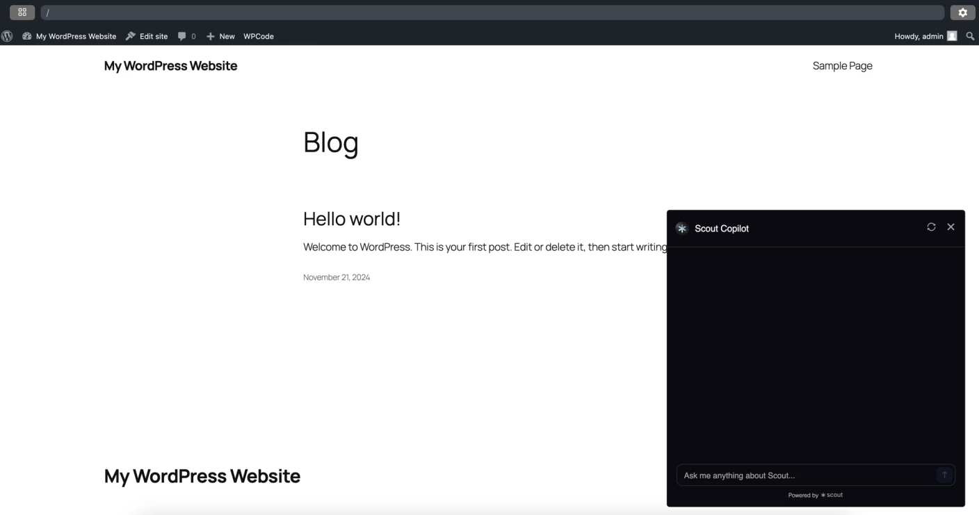 Documentation on how to add a Scout copilot to your WordPress website.