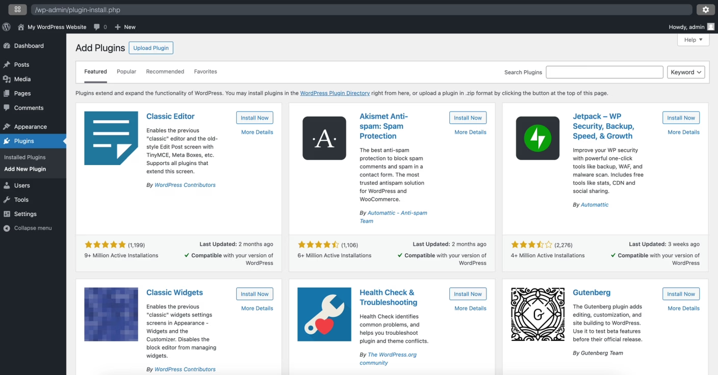 - In the left hand menu bar select Plugins and Add New Plugin.